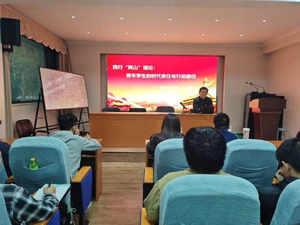 10月18日上午,学院党委书记陆伟以“践行‘两山’理论:青年学生的时代责任与行动路径”为主题进行辅导报告。随后,辅导员史健桥老师以“传承伟大精神,谱写青春华章”为主题进行辅导报告。