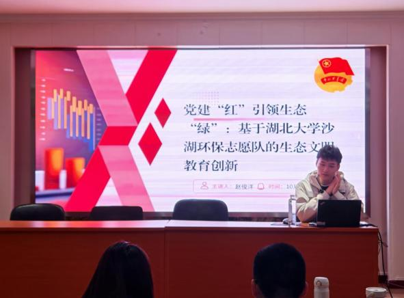 10月19日上午,辅导员赵俊洋老师以“党建‘红’引领生态‘绿’”为主题进行辅导报告,分享了湖北大学沙湖环保志愿队的实践经验,展示了党建引领下青年学子在生态文明建设中的创新与担当。随后辅导员韩鹏振老师以“端正入党动机,争取早日入党”为主题进行辅导报告。