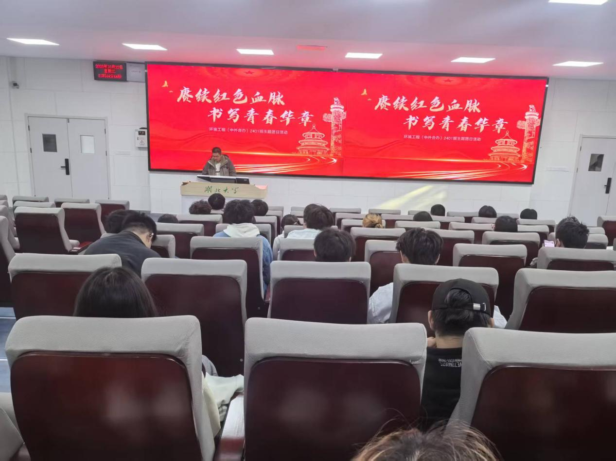 10月22日下午,环境工程(中外合作办学)2401班团支部开展了以“赓续红色血脉,书写青春华章”为主题的10月示范性主题团日活动,由班长赵张驰主持,围绕红色精神、校史传承、中秋文化三个方面展开。