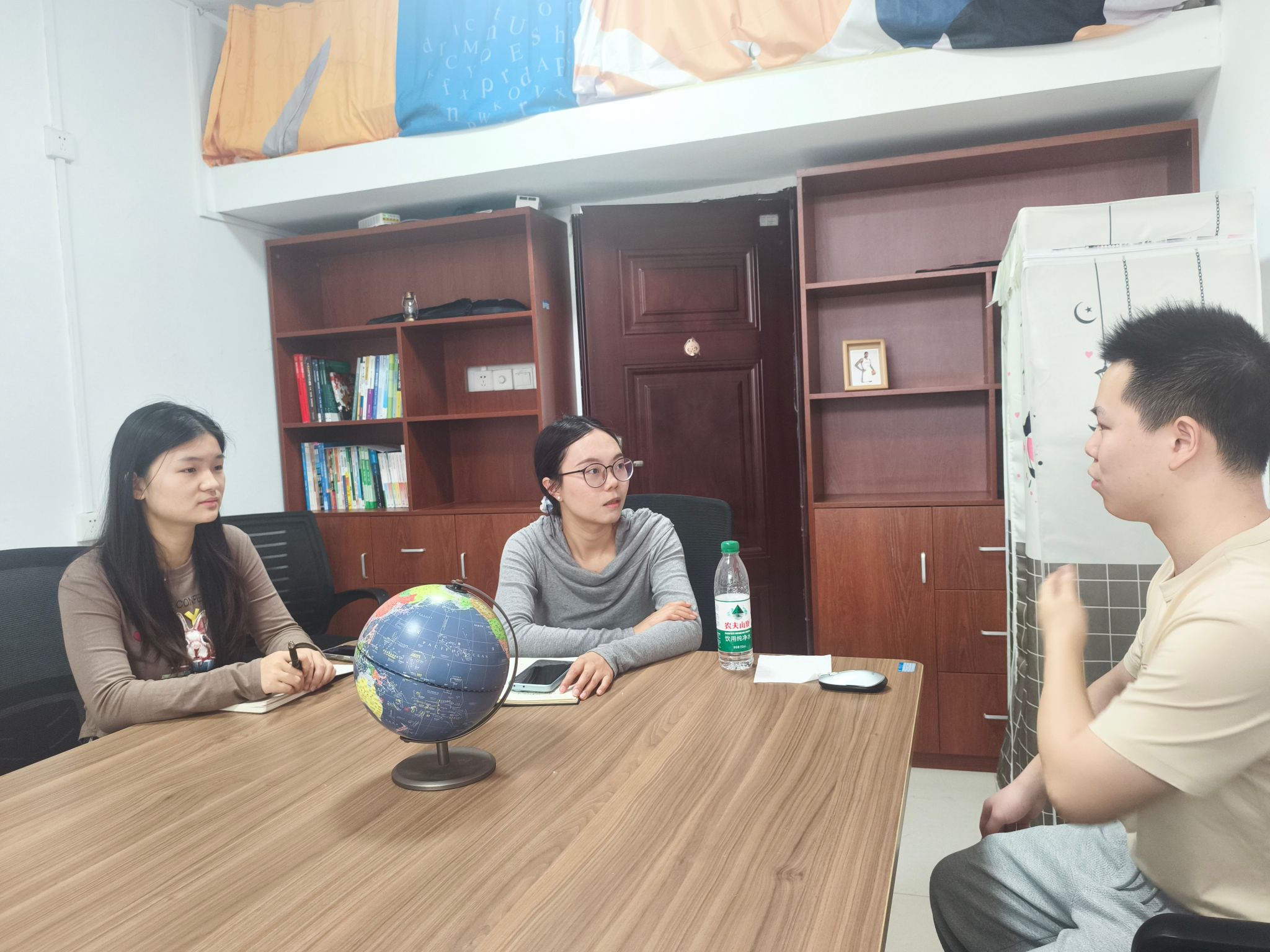 2026年4月17日,为深入了解学生思想、学习与生活状态,掌握“一站式”学生社区建设点使用情况,资源环境学院在2期A栋学生公寓“一站式”学生社区建设点召开座谈会,辅导员周婷及学生代表参会。